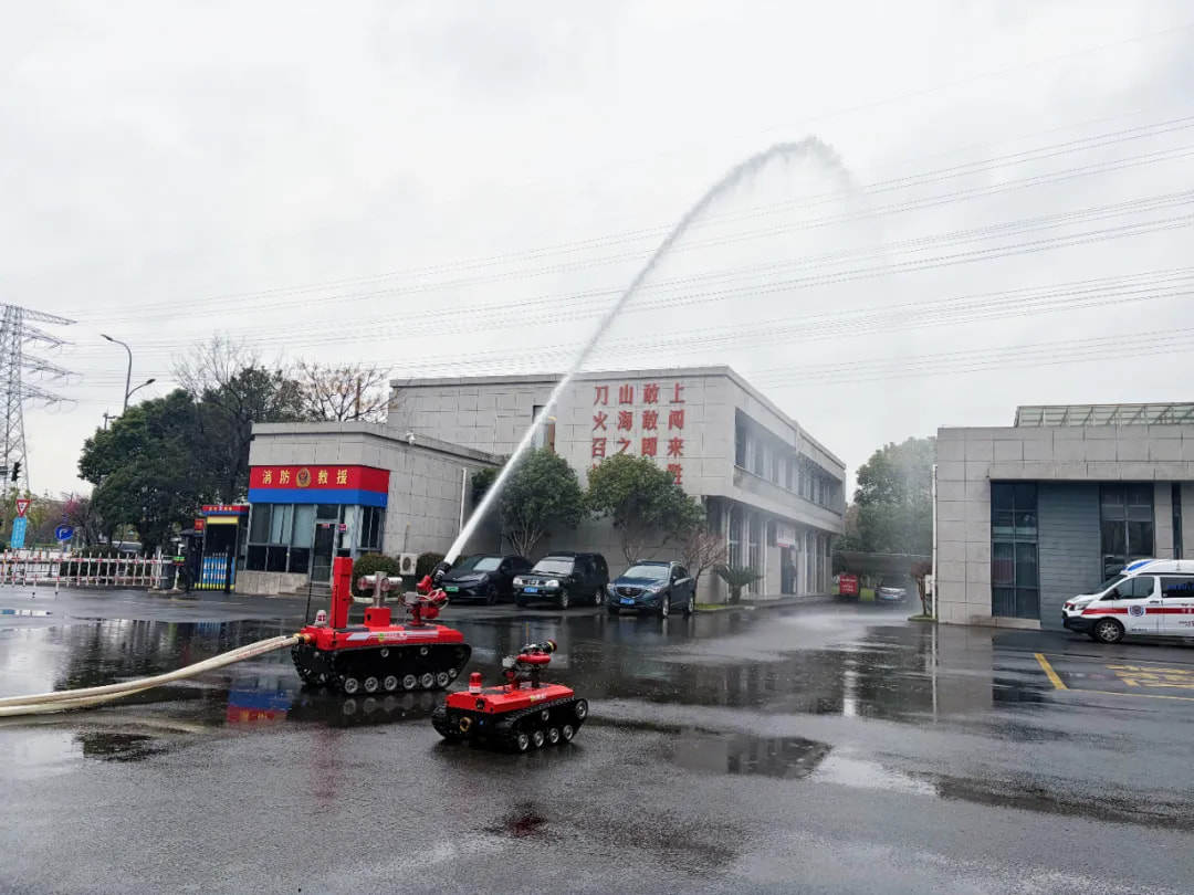 活动现场,奔野重工自主研发的消防履带式灭火机器人重磅亮相,开展实战化演示。这台集侦察、灭火、气体探测于一体的智能装备,凭借强劲动力与稳定操控,在现场完成精准行进、水炮喷射等科目,远距离射程与高扬程喷射效果震撼全场,充分展现“科技消防、智慧救援” 的硬核实力。